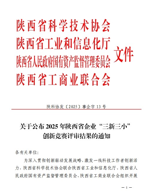 喜報!二一〇所榮獲2025年陜西省企業“三新三小”創新競賽一等獎
