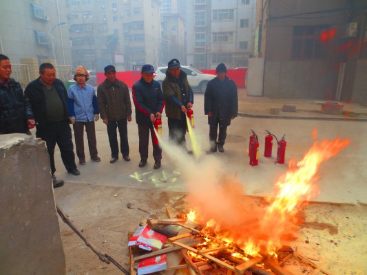 春節(jié)將至,為確保210小區(qū)的安全,咸陽二一零物業(yè)管理有限責(zé)任公司,于2015年2月6日在小區(qū)組織了一場消防滅火演練,許多小區(qū)業(yè)主現(xiàn)場進(jìn)行了觀摩。上午8:50在12#樓前空地處,由小區(qū)安全員孟貴山同志就滅火器的構(gòu)成、作用及怎樣使用滅火器等相關(guān)知識(shí)講解并現(xiàn)場示范。事前物業(yè)公司對消防演練進(jìn)行了周詳?shù)陌才牛阂髤⒓友菥毜乃腥藛T聽從安排,服從指揮,讓每個(gè)職工親身實(shí)踐正確使用滅火器滅火。參加的人員包括門衛(wèi)、車棚、巡邏、保潔等各部門的員工。9:00,點(diǎn)火人員點(diǎn)燃了熊熊烈火,消防滅火演練人員3人一組,分為3個(gè)組,第一組人員提著滅火器沖到離火焰約2米處對準(zhǔn)熊熊烈火的根部進(jìn)行高壓噴射,火勢迅速被控制,后面兩組依次輪流進(jìn)行滅火演練,最后火焰被徹底熄滅了。整個(gè)過程緊張有序,取得了較好的效果,受到在場業(yè)主的一致好評。通過本次消防演練,進(jìn)一步增強(qiáng)了小區(qū)住戶的安全防范意識(shí)、完善了消防預(yù)案、提高了消防應(yīng)急救援水平。