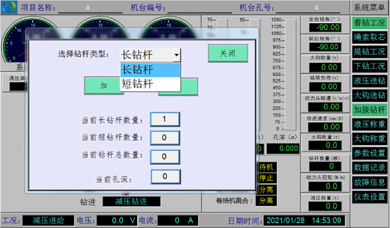 HXY-2000智能型鉆探機(jī)組是專門針對砂巖鈾礦地質(zhì)勘探和開采孔研制的新產(chǎn)品,鉆塔設(shè)計(jì)額定載荷500KN,是目前國內(nèi)鈾礦勘查設(shè)備鉆塔承載力最強(qiáng)的設(shè)備之一。設(shè)備配備了鉆參顯示系統(tǒng),拉力傳感器、傾角傳感器、過載過位報(bào)警系統(tǒng),在鉆探施工過程中,機(jī)班長可通過鉆參系統(tǒng)排查安全隱患,杜絕人員盲鉆,極大保障了人員和設(shè)備安全。